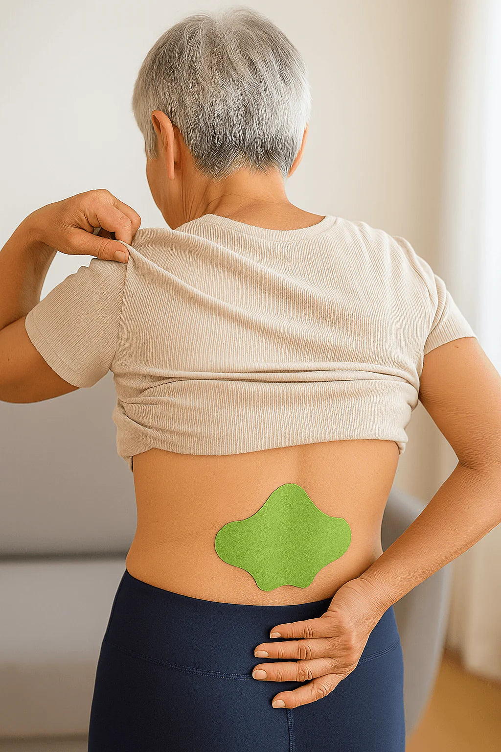 È semplicissimo: rimuovi la pellicola protettiva e applica il cerotto direttamente sulla zona dolente (zona lombare, colonna vertebrale, fianchi o glutei).