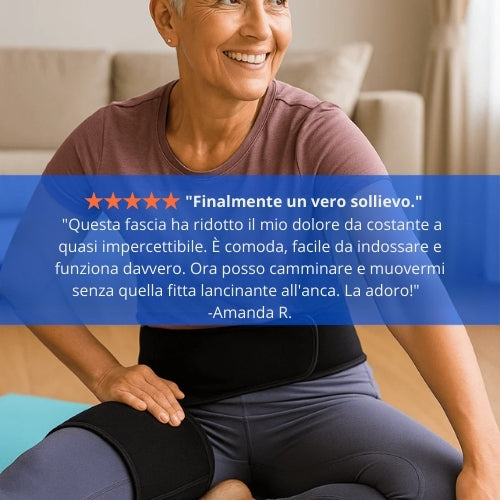 "Finalmente riesco a dormire tutta la notte senza dolore! Il mio dolore all'anca è sparito dopo soli 5 giorni e, insieme a quello, anche la sciatica se n'è andata quasi del tutto. Ora al risveglio mi sento rigenerata, invece che rigida e dolorante."